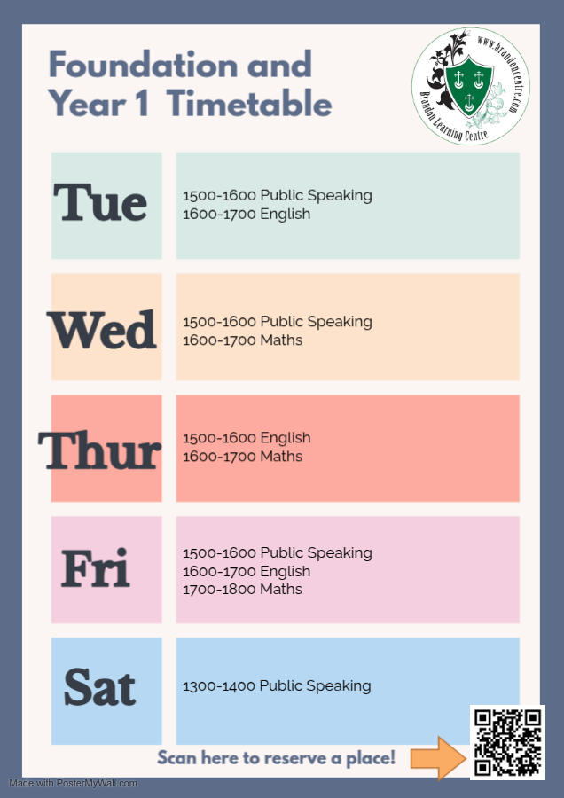 Weekdays (Tuesday to Friday) – AM or PM sessions